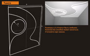 • На месте мастер уточнит, какие варианты конструкции можно сделать, определит места расположения и количество осветительных приборов, карнизов, декоративных элементов, поможет определиться с выбором полотен.
