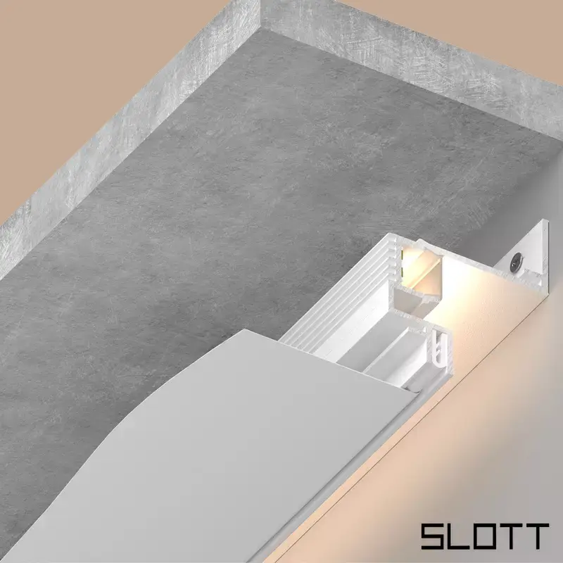 - SLOTT VILAR: профиль с компактными размерами, оптимален для помещений со сложной конфигурацией. С встроенным каналом для подсветки.