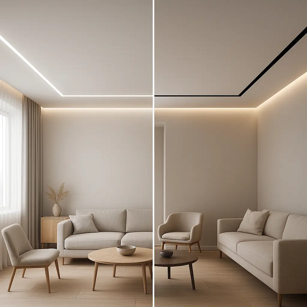 - Иллюзия простора: свет по периметру визуально «поднимает» потолок выше.