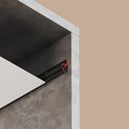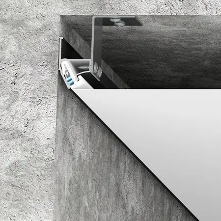 EuroLumFer 02: теневое примыкание для ПВХ полотен с гарпунной системой крепления.